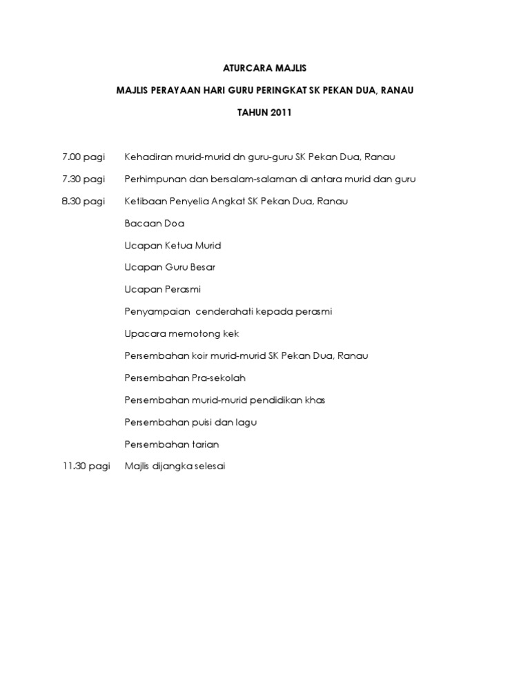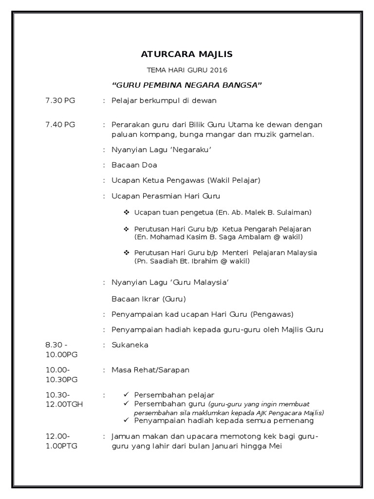 Aturcara Majlis Sambutan Hari Guru Pdf