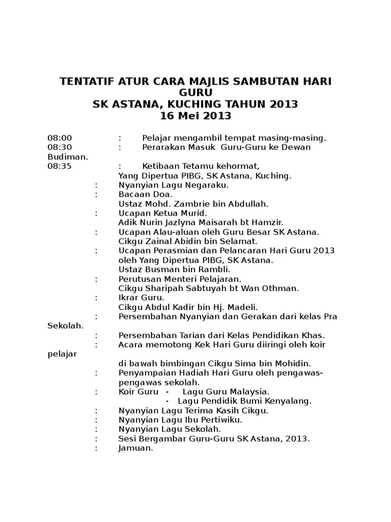 Contoh buku aturcara untuk majlis sekolah. Guru Hari LLC filed as a Domestic in the State of California and is no longer active. Jumaat 16 mei 2014dewan sri gemilangguru.